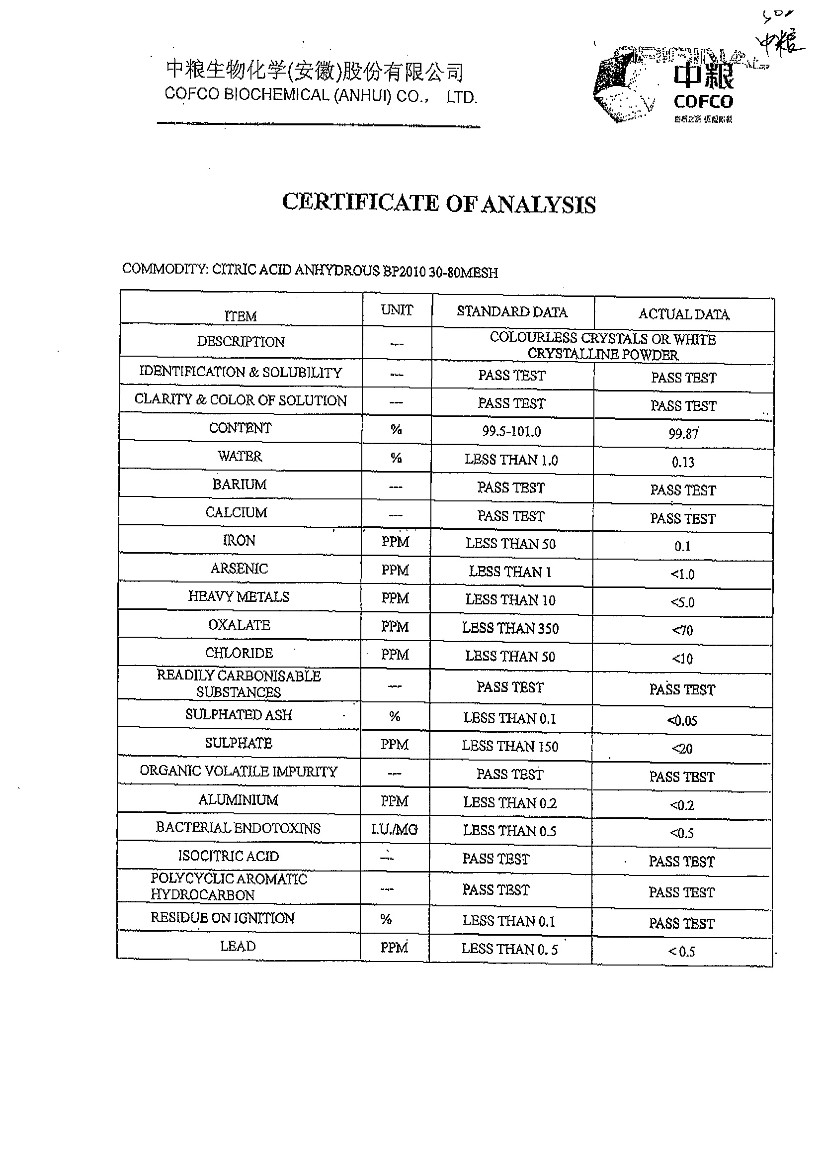 Citric acid can be used as an alternative to nitric acid in passivation of stainless steel.