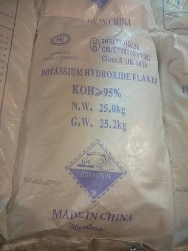 氫氧化鉀(化學式:KOH),俗稱苛性鉀,白色固體,溶於水、醇,不溶於醚。在空氣中易吸潮脫水。與二氧化碳反應生成碳酸鉀。所以它可以用來吸收二氧化碳。用途:基礎化工原料,用於醫藥、日化等行業。